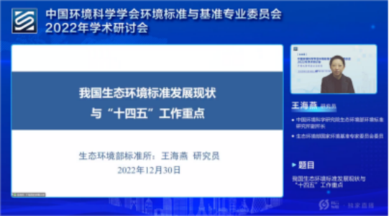 為加強生態(tài)環(huán)境標準與基準科研領(lǐng)域的學(xué)術(shù)交流,進(jìn)一步支撐發(fā)揮標準在生態(tài)文明建設中的作用,在生態(tài)環(huán)境部指導下,2022年12月30日,中國環(huán)境科學(xué)學(xué)會(huì )環(huán)境標準與基準專(zhuān)業(yè)委員會(huì )2022年學(xué)術(shù)研討會(huì )隆重召開(kāi)。本次大會(huì )由中國環(huán)境科學(xué)學(xué)會(huì )環(huán)境標準與基準專(zhuān)業(yè)委員會(huì )主辦,中國環(huán)境科學(xué)研究院(生態(tài)環(huán)境部環(huán)境標準研究所)組織承辦,以視頻學(xué)術(shù)報告和網(wǎng)絡(luò )直播方式進(jìn)行。