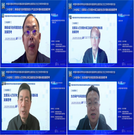 為深入開(kāi)展交流,研討會(huì )設置了“降碳減污協(xié)同增效的大氣生態(tài)環(huán)境標準發(fā)展思考”、“支撐深入打好碧水保衛戰的生態(tài)環(huán)境標準發(fā)展思考”、“支撐深入打好凈土保衛戰的生態(tài)環(huán)境標準發(fā)展思考”、“生態(tài)保護與風(fēng)險防控標準發(fā)展思考”4個(gè)分論壇,分別由朱法華教授、胡洪營(yíng)教授、林玉鎖研究員、全占軍研究員主持開(kāi)展,27位來(lái)自大氣、水、土壤、固廢、生態(tài)等領(lǐng)域的專(zhuān)家學(xué)者進(jìn)行了報告分享和學(xué)術(shù)交流。